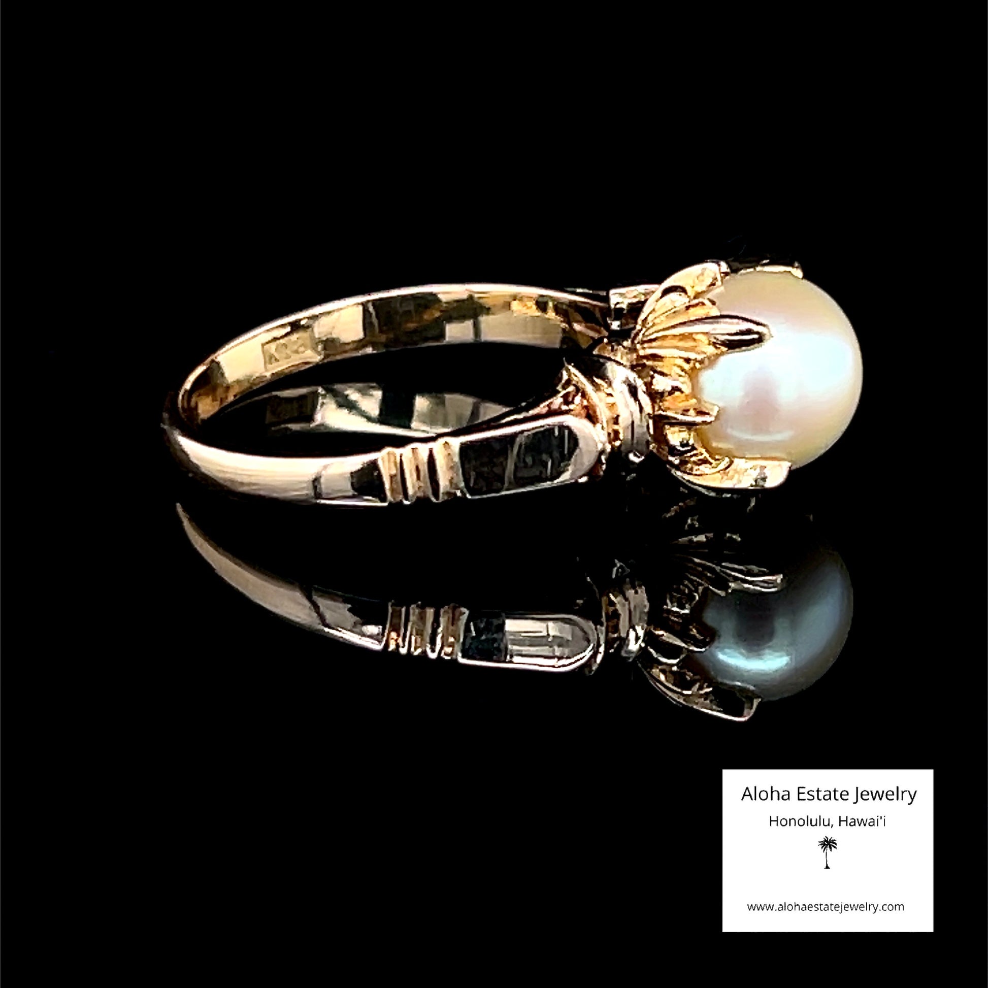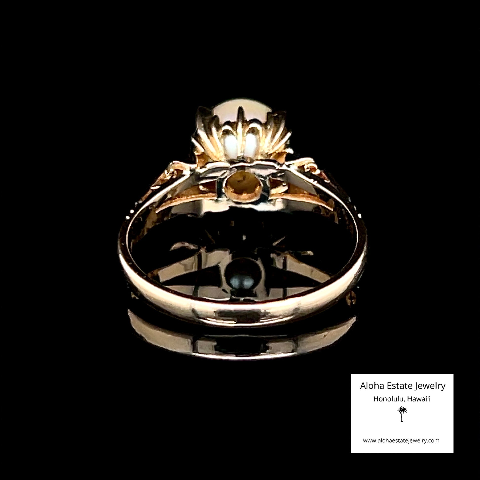 Antique Fine Cultured Akoya Pearl Ring in Custom 18K Setting