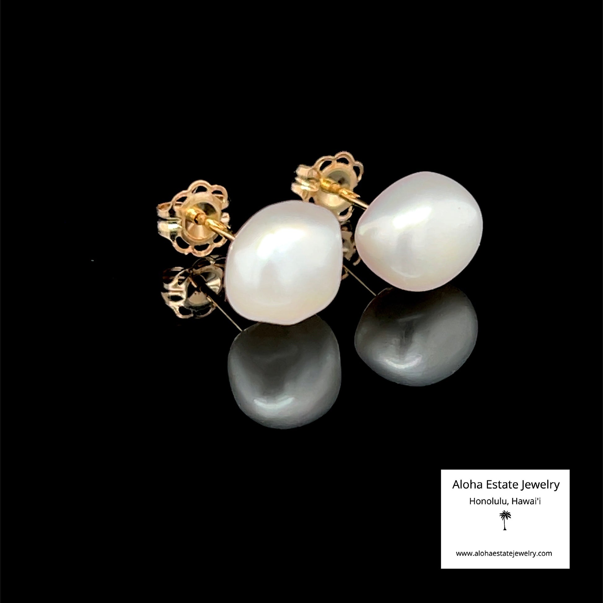 Explore the understated elegance of these 14K baroque freshwater pearl earrings, where nature's irregularities become a hallmark of distinction. Each piece showcases a luminous white finish with exceptional luster, while the organic baroque silhouette ensures no two earrings are precisely alike.