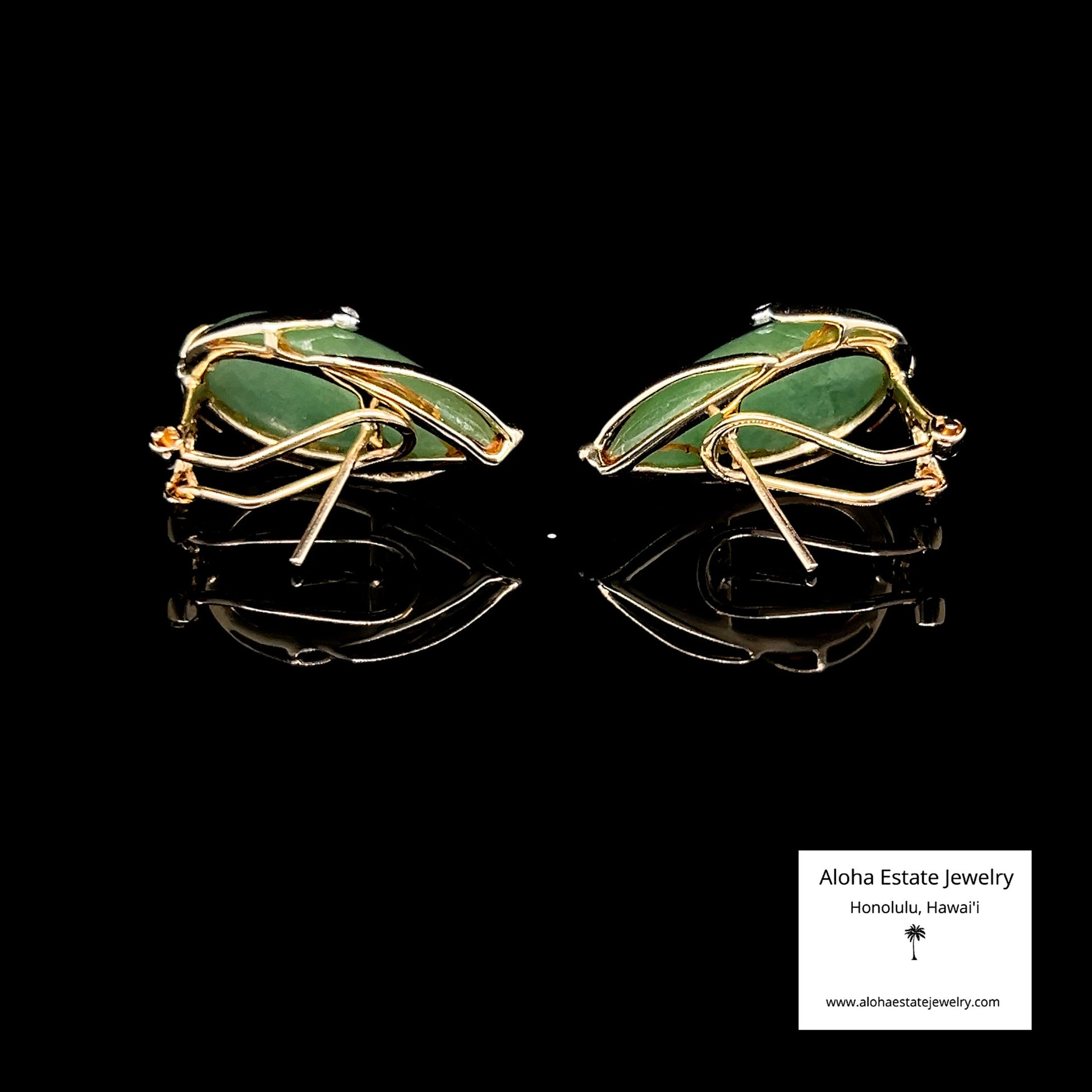 - Gemstones: Natural Type-A (untreated) jadeite cabochons, highly translucent, rich medium green