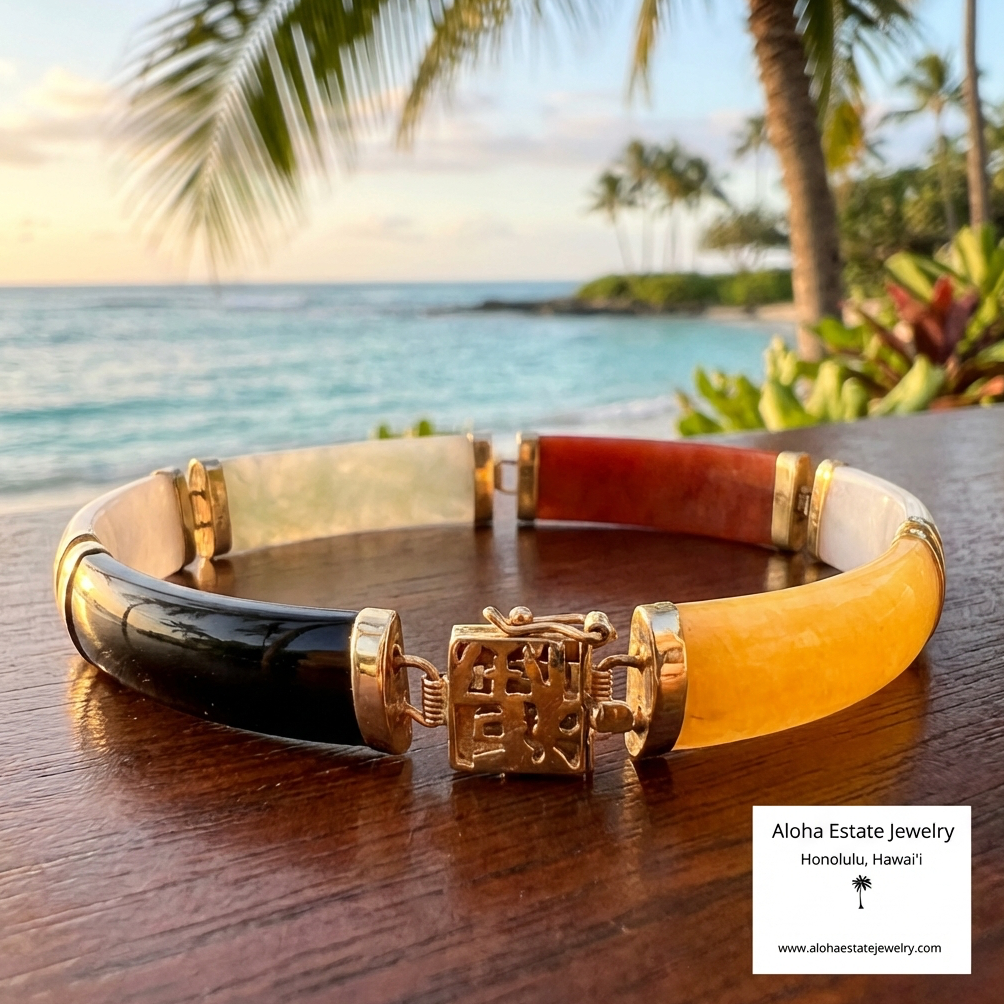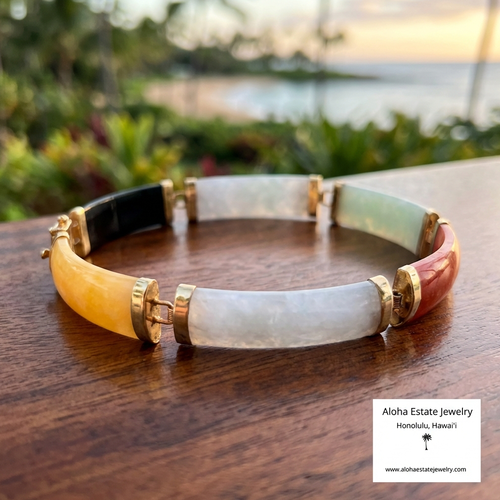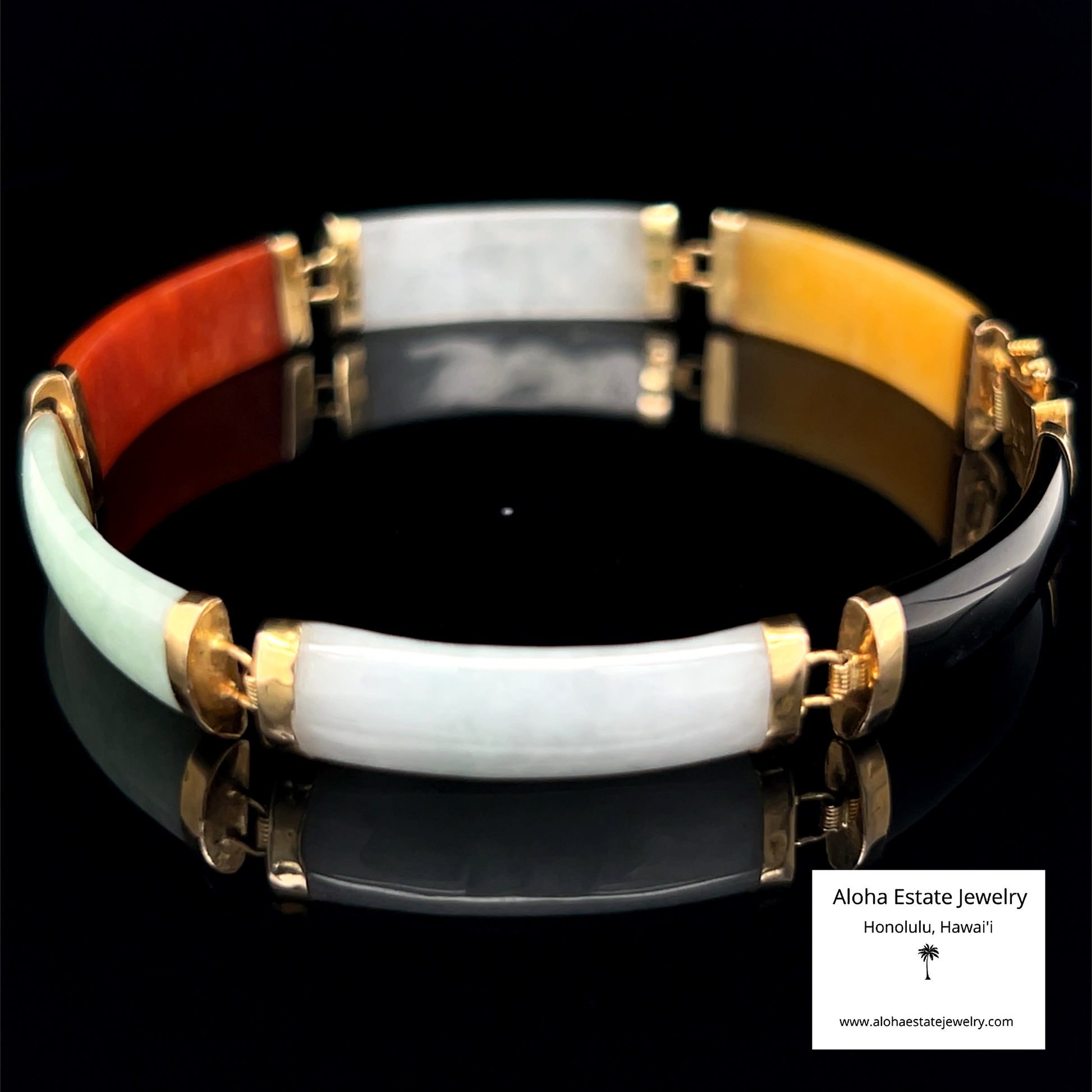 Multi-Color Jade Panel Bracelet in 14K Gold Fu Clasp
