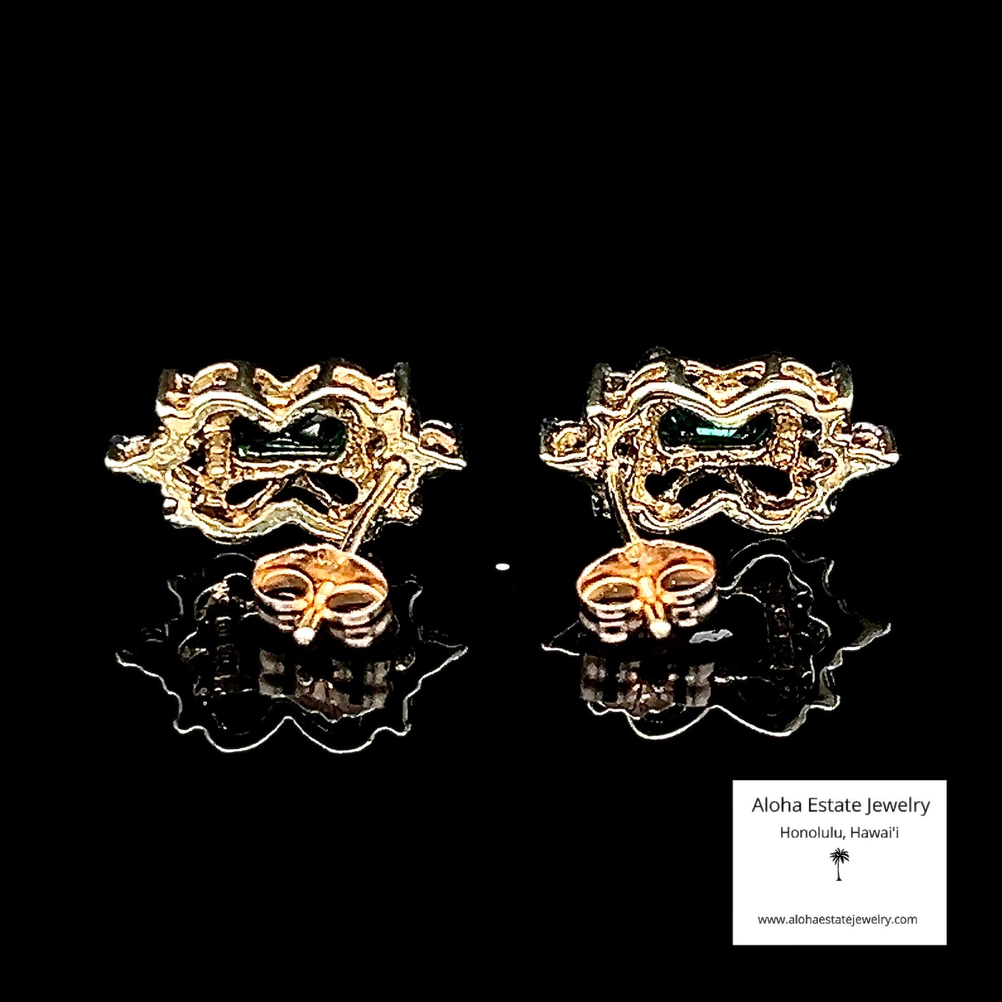 Emerald & Diamond Earrings 14K Gold Vintage 1970s