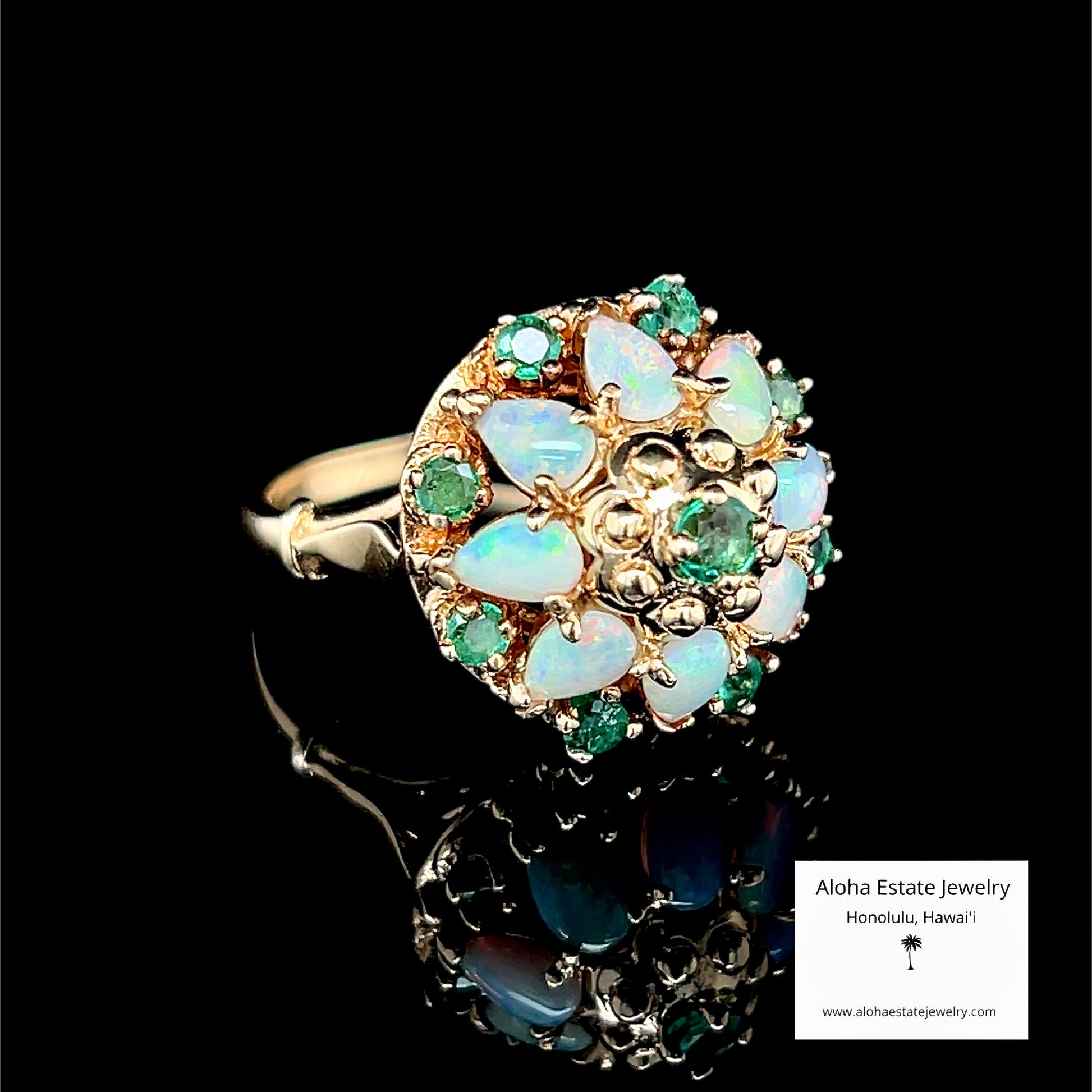 Vintage 14K Gold Australian Opal & Emerald Dome Ring