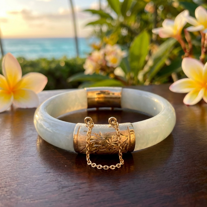Whether cherished as a statement of heritage or an emblem of quiet luxury, it stands as an enduring masterpiece among natural jadeite jewelry and vintage estate treasures.