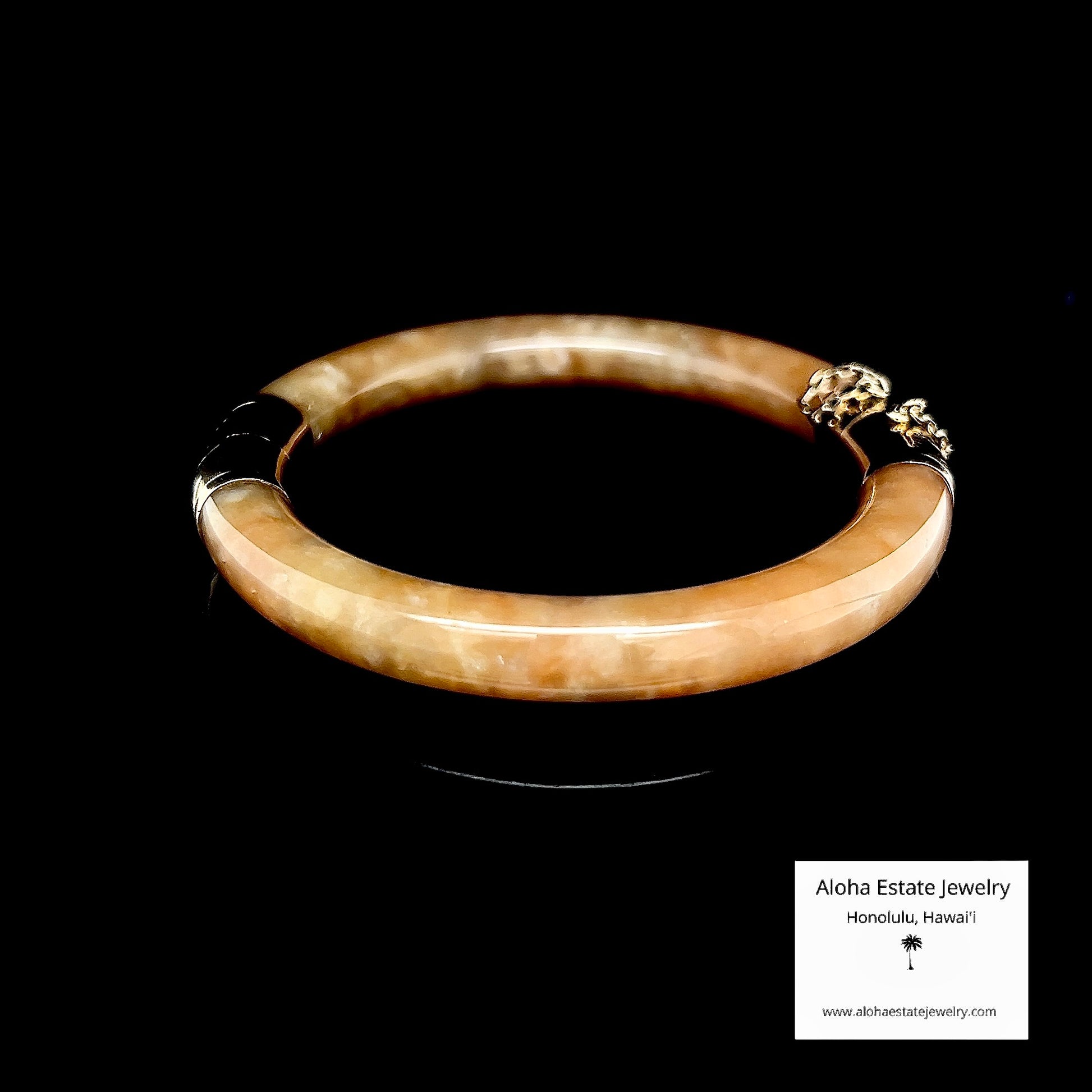 Vintage 14K Honey Brown Jadeite Hinged Bangle Bracelet