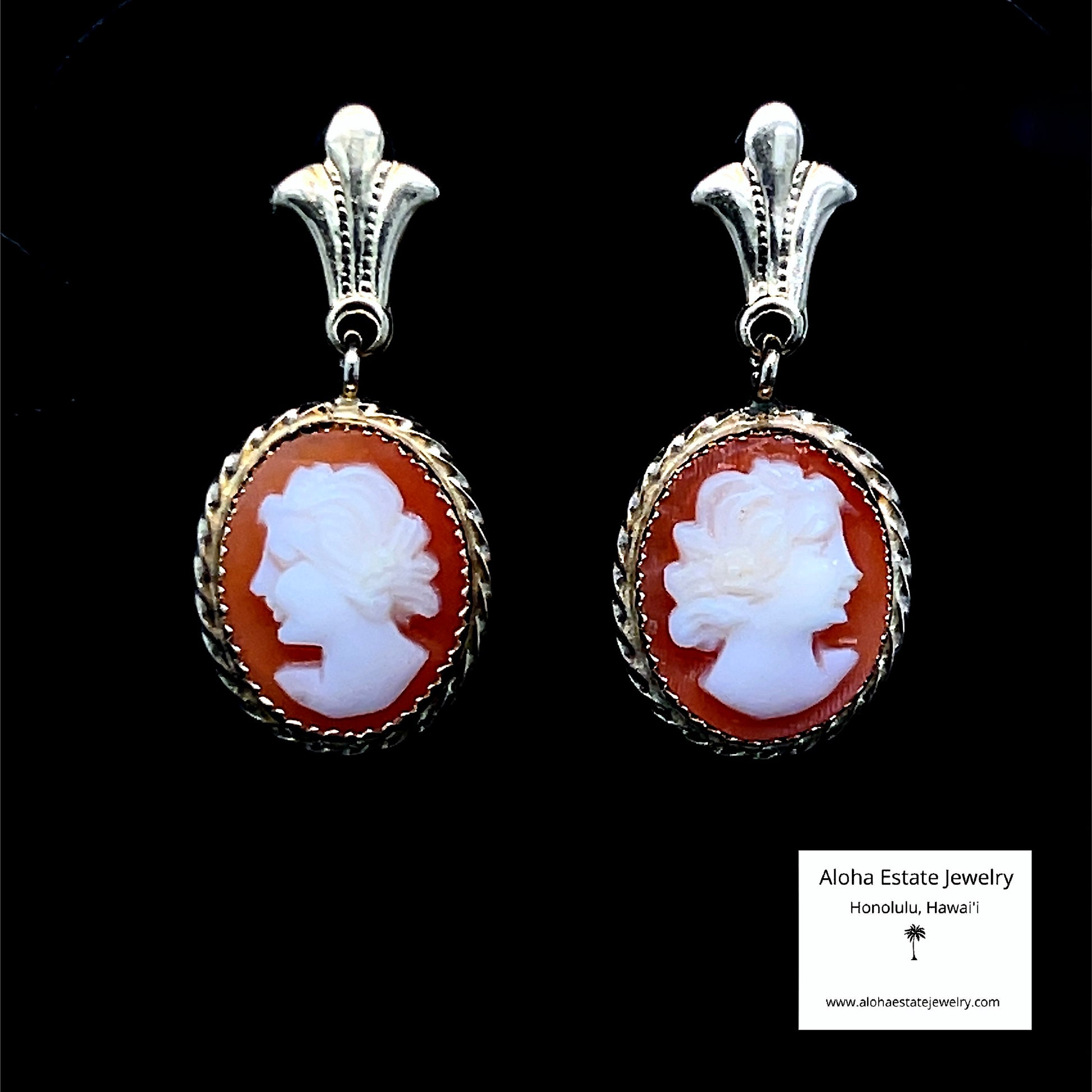Vintage 14k Hand Carved Cameo Dangle Earrings