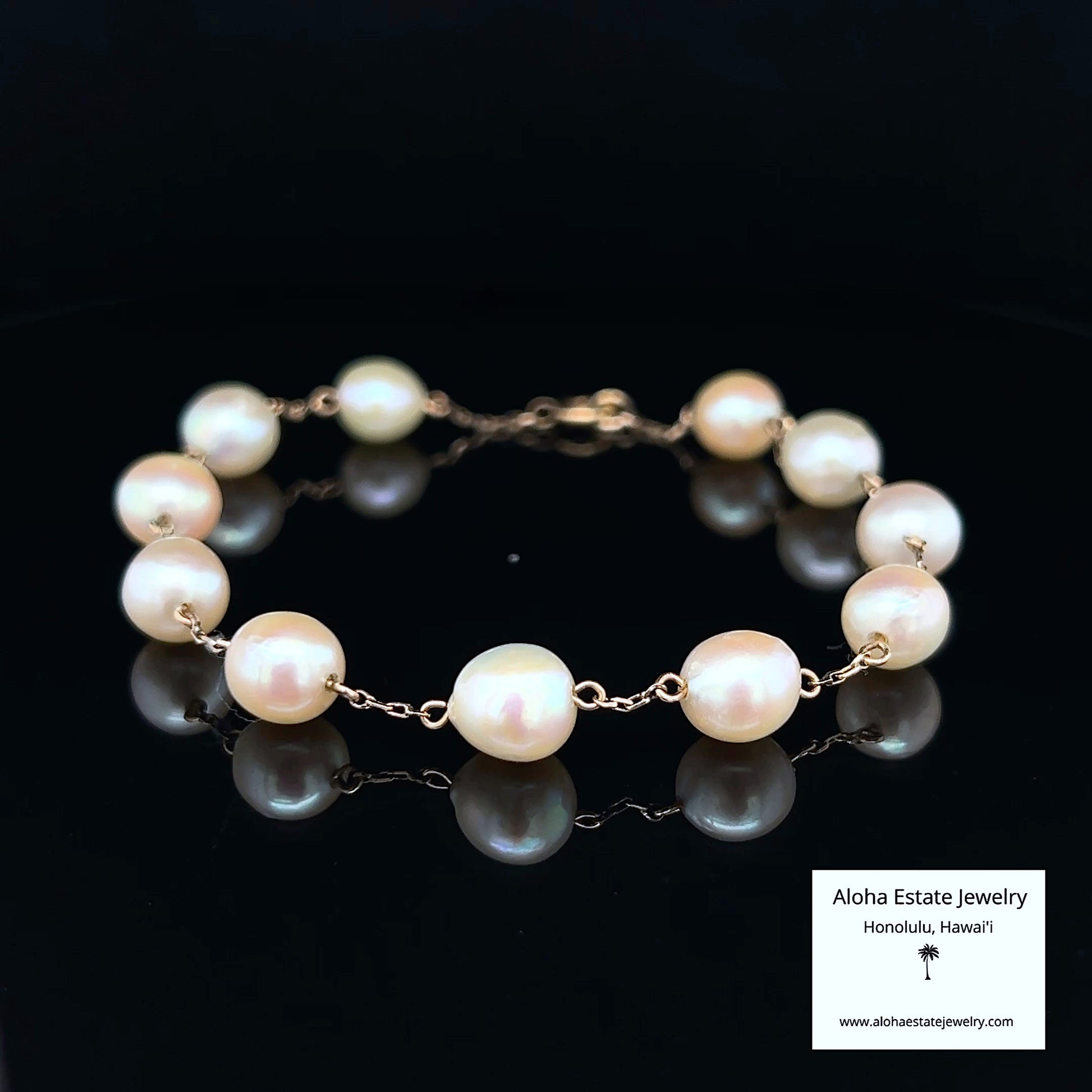 The off-round shape of each pearl adds organic character while maintaining harmonious balance. Meticulously crafted to secure each pearl in its own fixed position, this 7-inch bracelet exemplifies timeless jewelry artistry. A refined piece for those who appreciate the quiet sophistication of authentic pearls and fine gold craftsmanship.