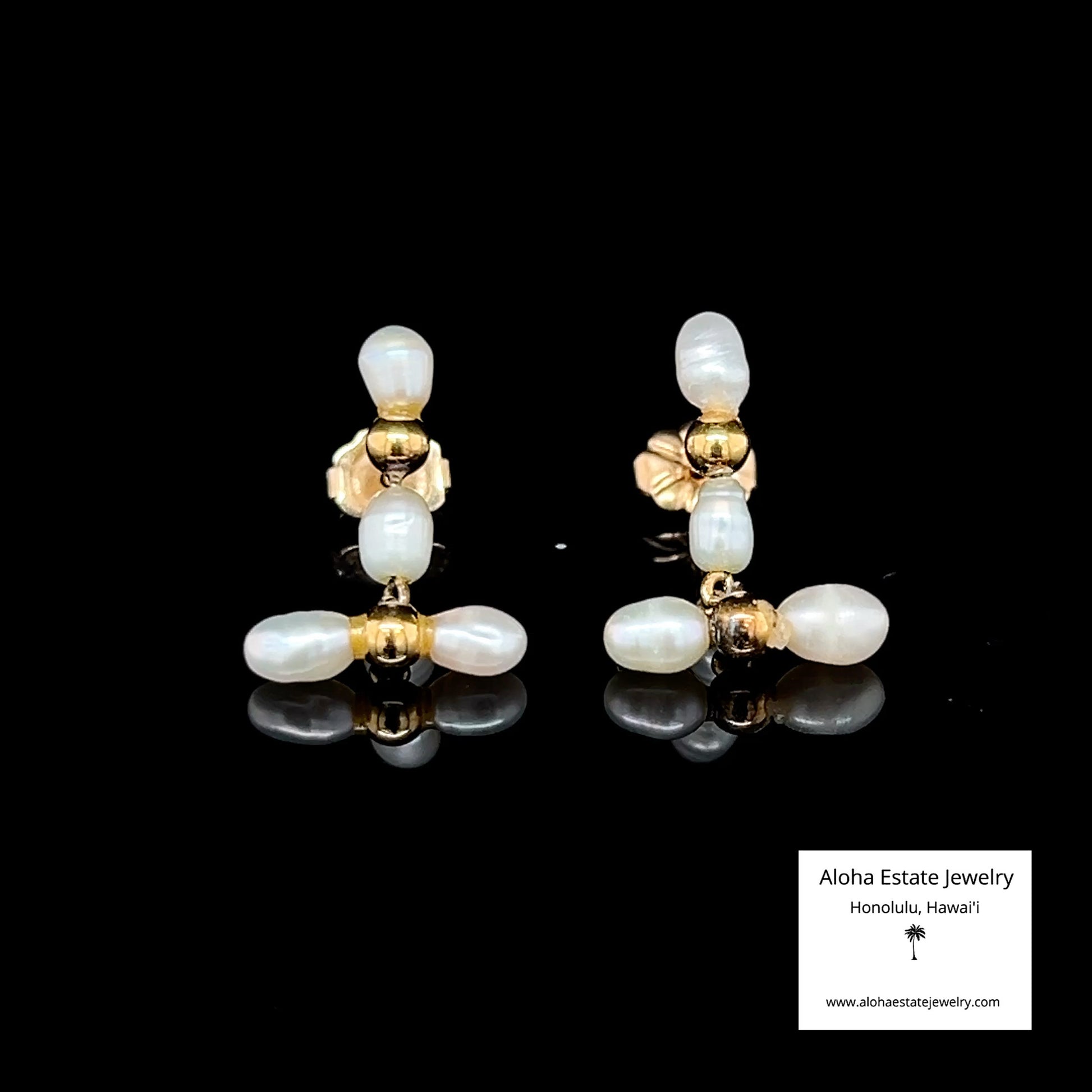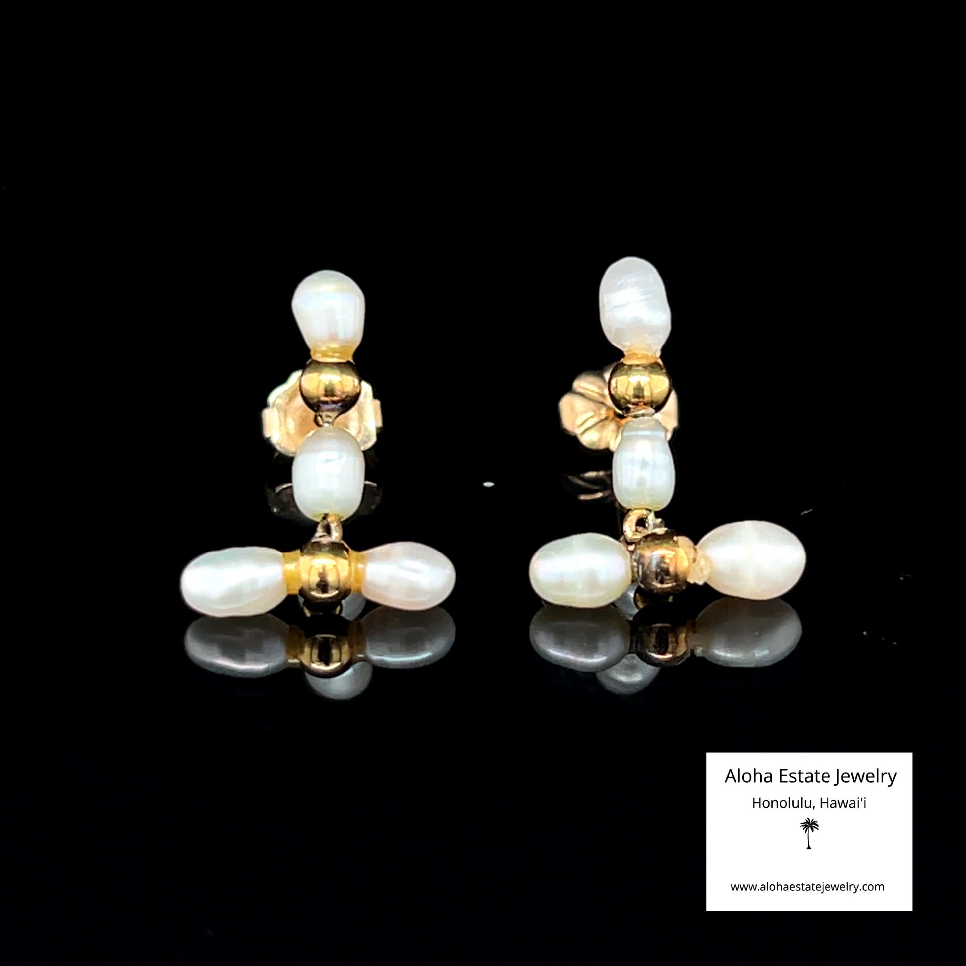 Vintage 18K Japanese Saltwater Keshi Pearls Drop Earrings