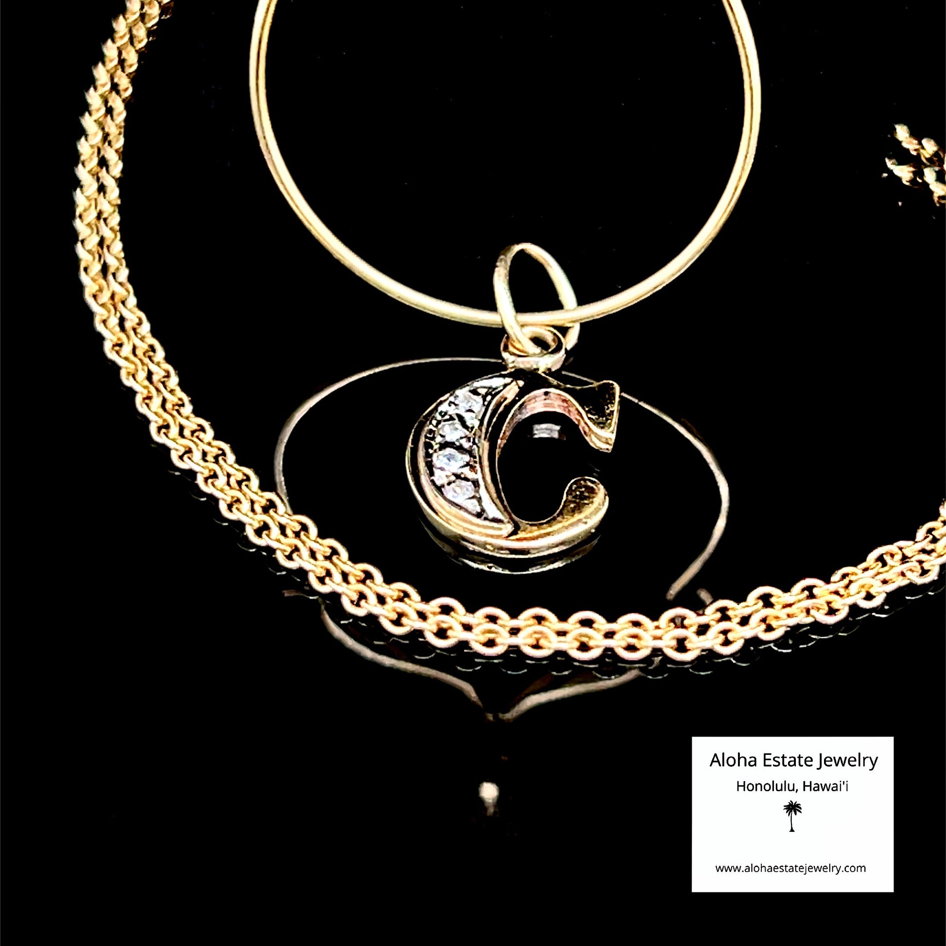 Diamond “C” Initial Charm Holder Necklace 14K Yellow Gold