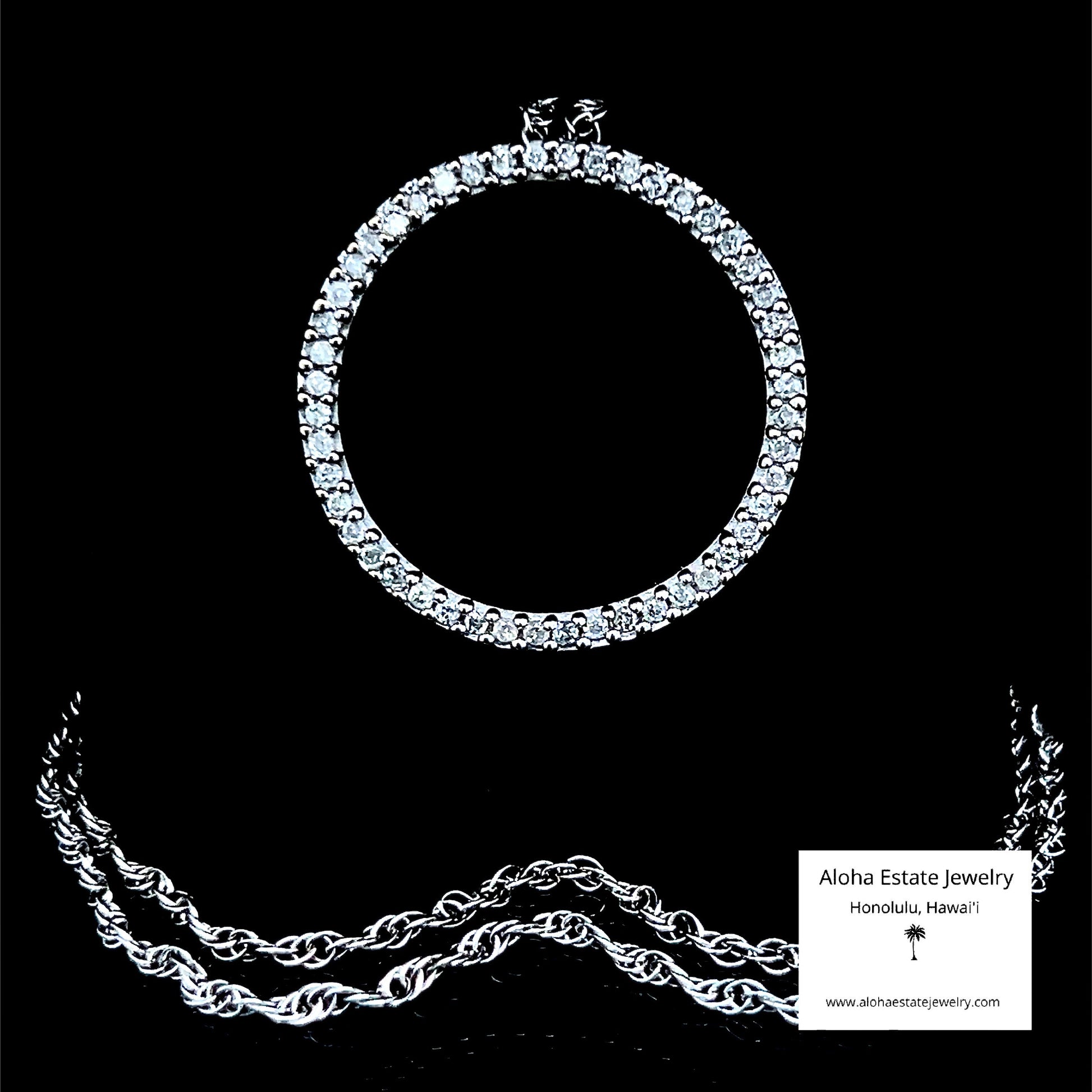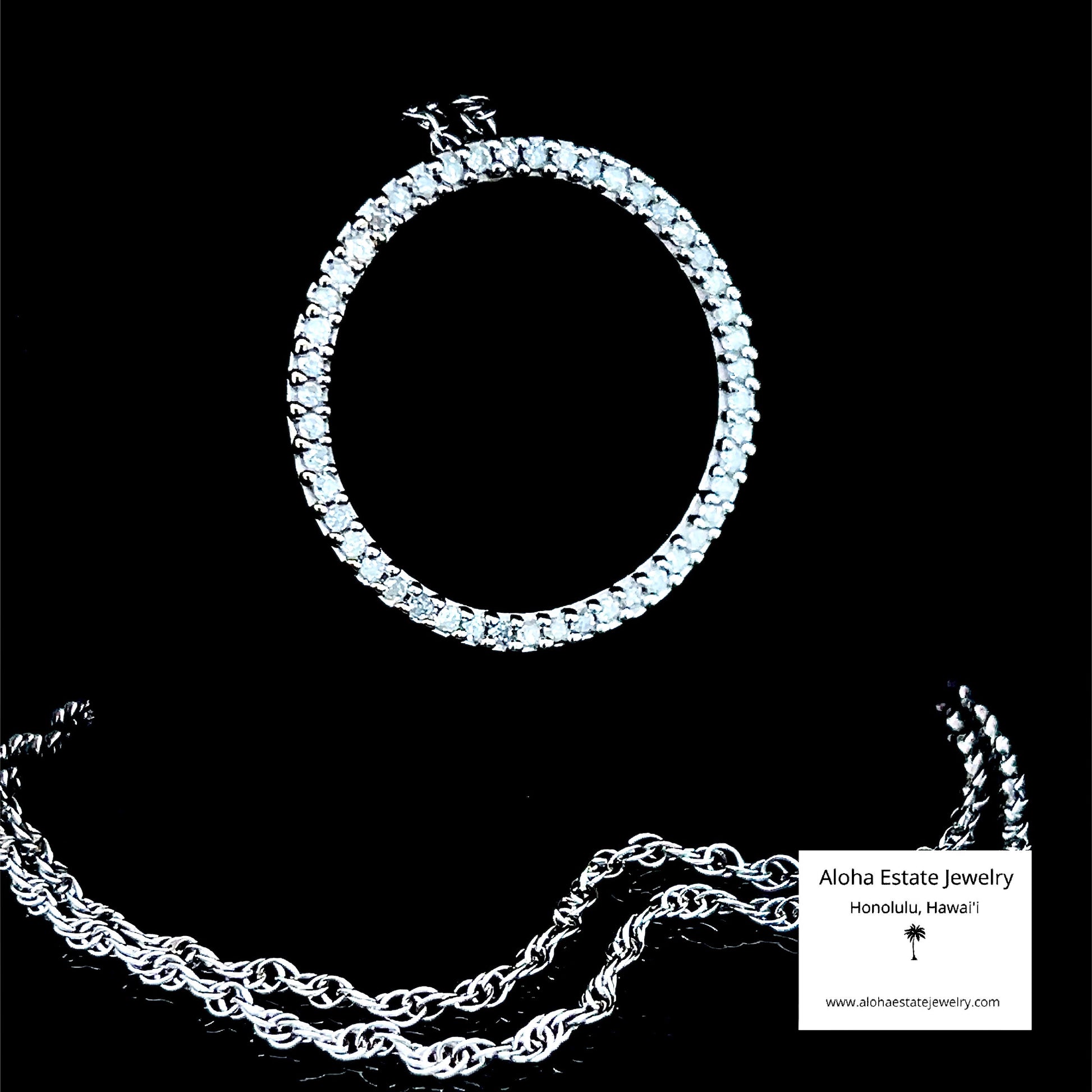 The matching 16-inch white gold chain completes a refined look that transitions effortlessly from day to evening wear. A versatile piece that honors vintage craftsmanship while remaining perpetually relevant to contemporary style.