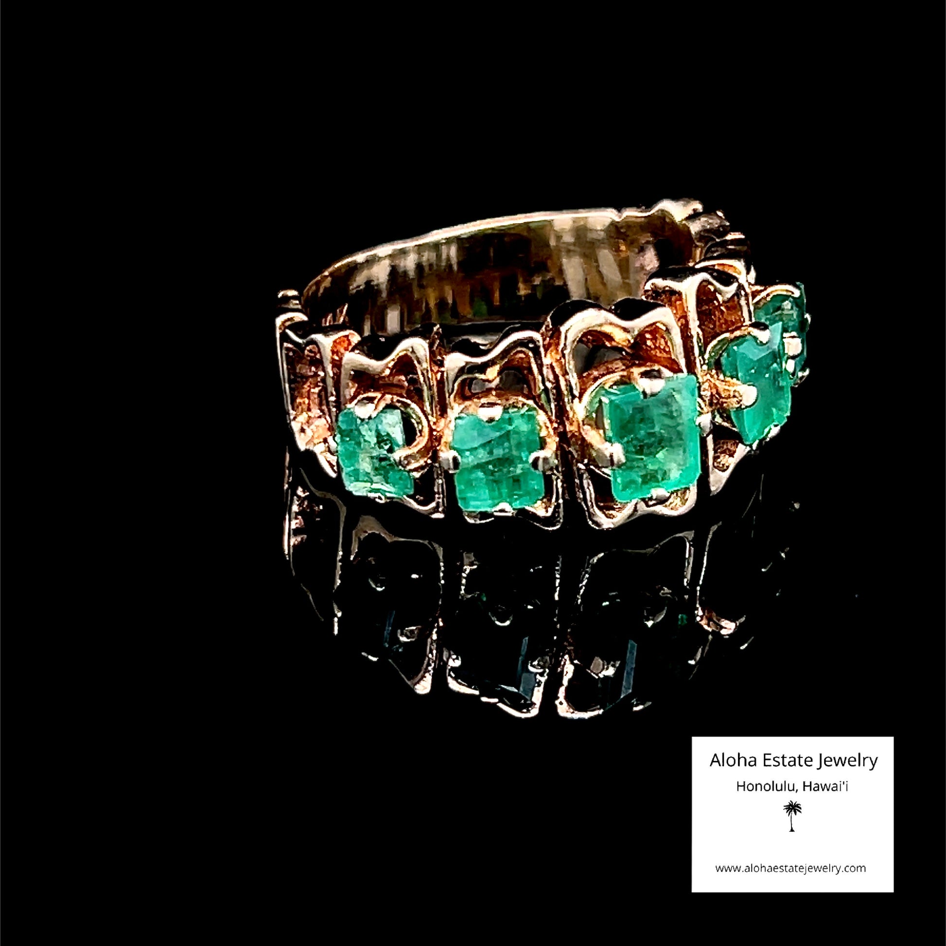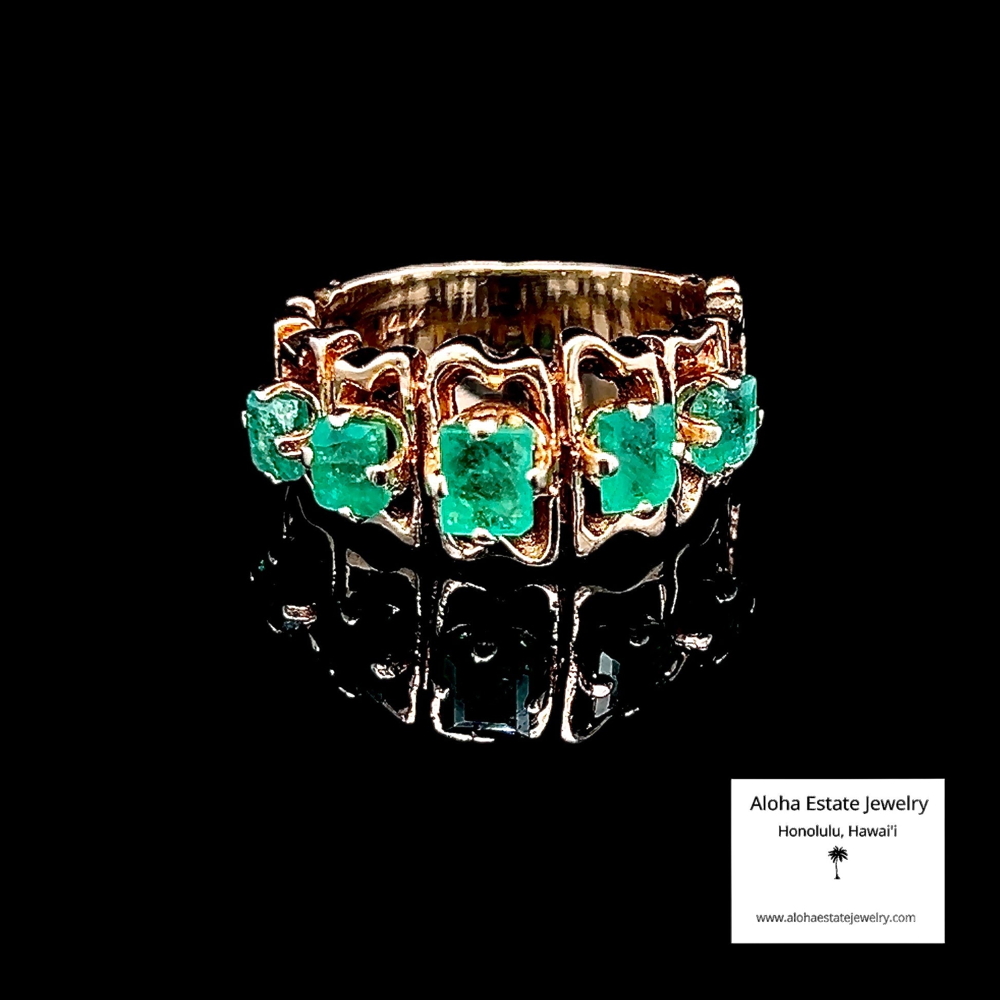 Vintage Mid-Century Brutalist Styled Columbian Emeralds Ring